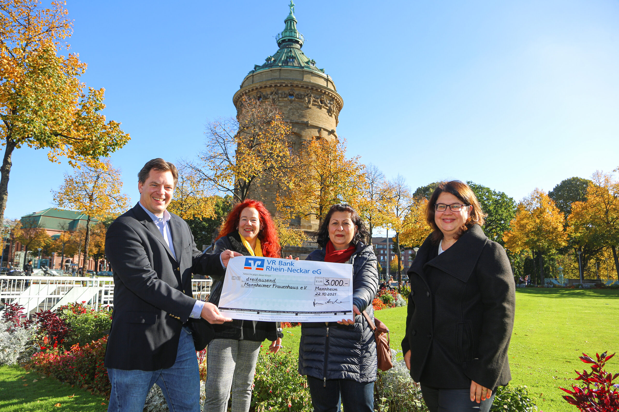Große Freude am Wasserturm über eine Spende des Unternehmerforum Rhein-Neckar e.V.. 3.000 Euro erhält das Mannheimer Frauenhaus, das sich im Besonderen um Frauen aus prekären Notlagen kümmert. Den Betrag...
